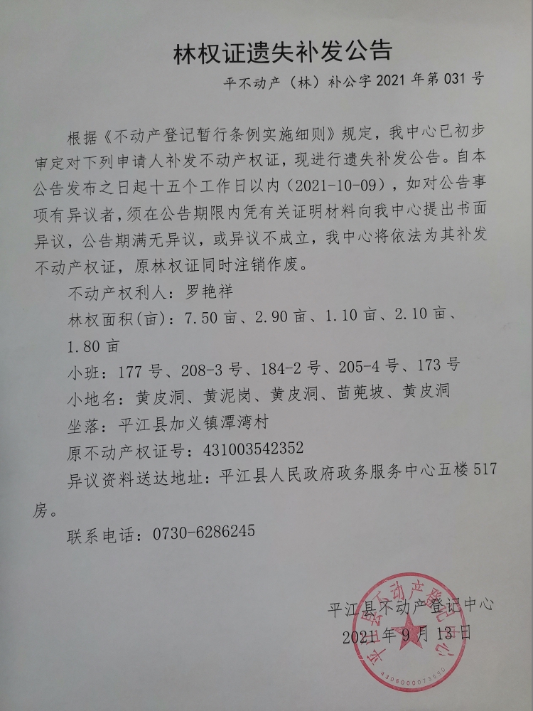 罗艳祥林权证遗失公告
