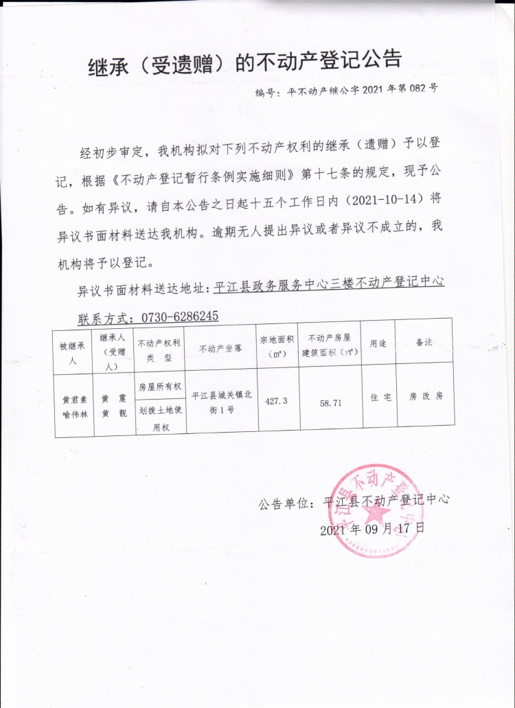 黄震 黄靓继承(受遗赠)的不动产登记公告.jpg