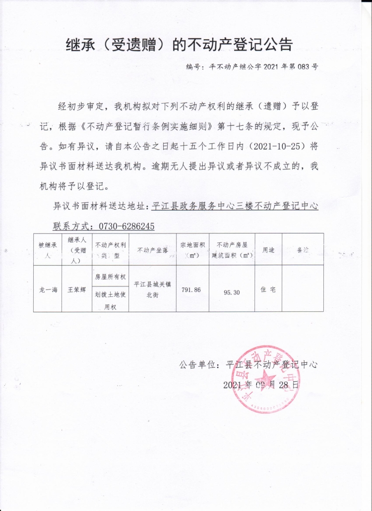 王笨辉继承(受遗赠)的不动产登记公告.jpg