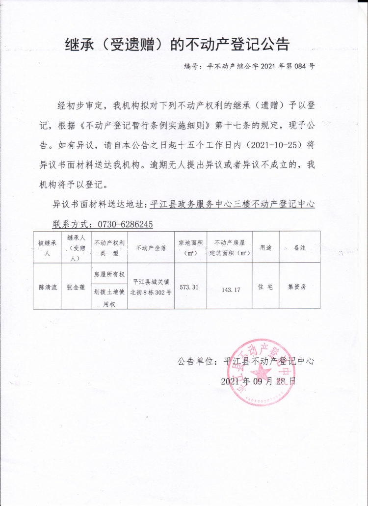 张金莲继承(受遗赠)的不动产登记公告.jpg