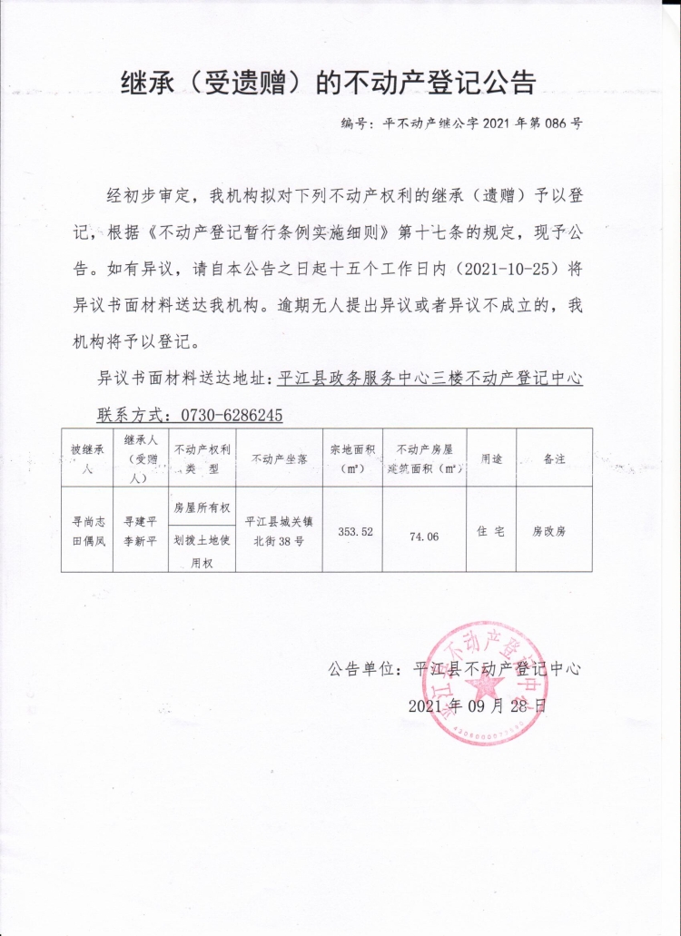 寻建平 李新平继承(受遗赠)的不动产登记公告.jpg