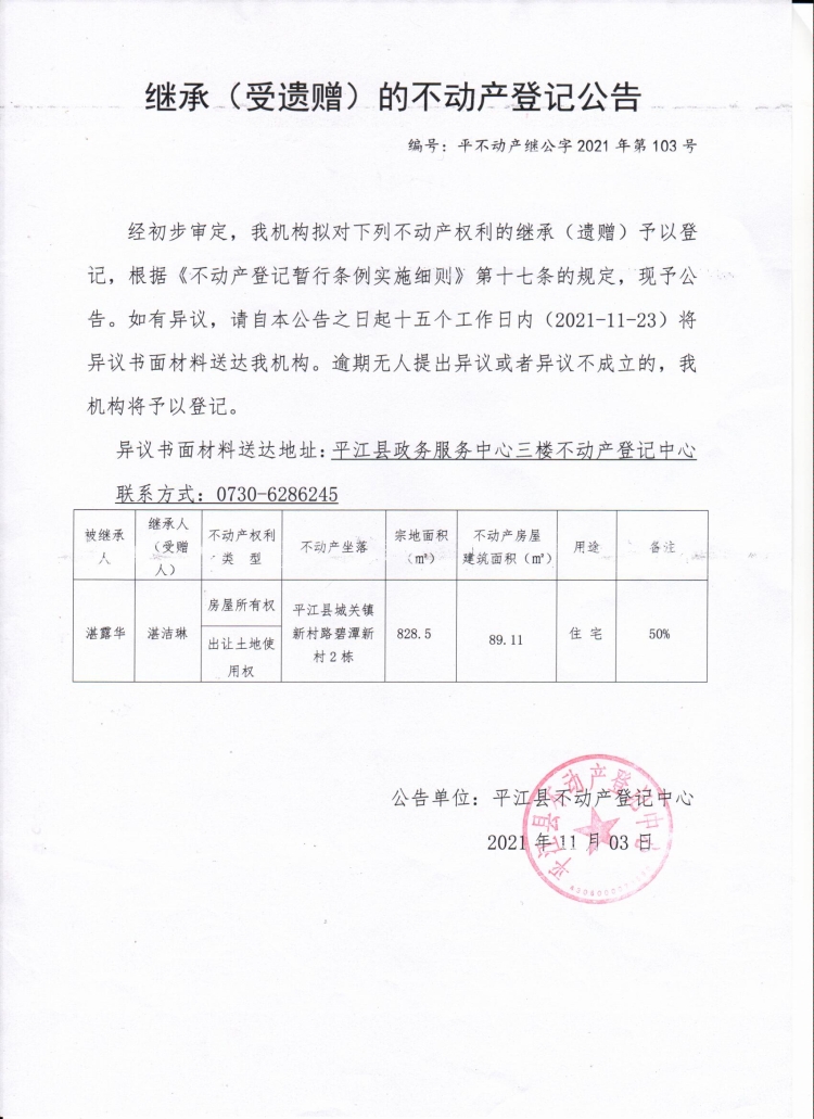 湛洁琳继承(受遗赠)的不动产登记公告.jpg