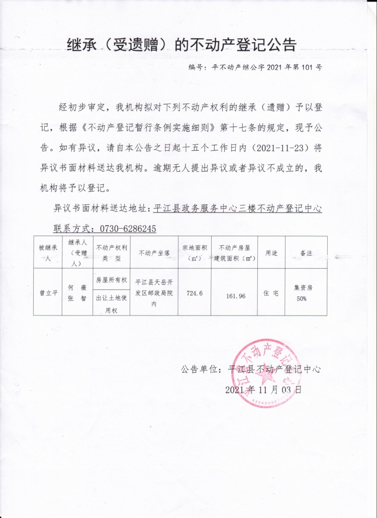 何薇 绵智继承(受遗赠)的不动产登记公告.jpg