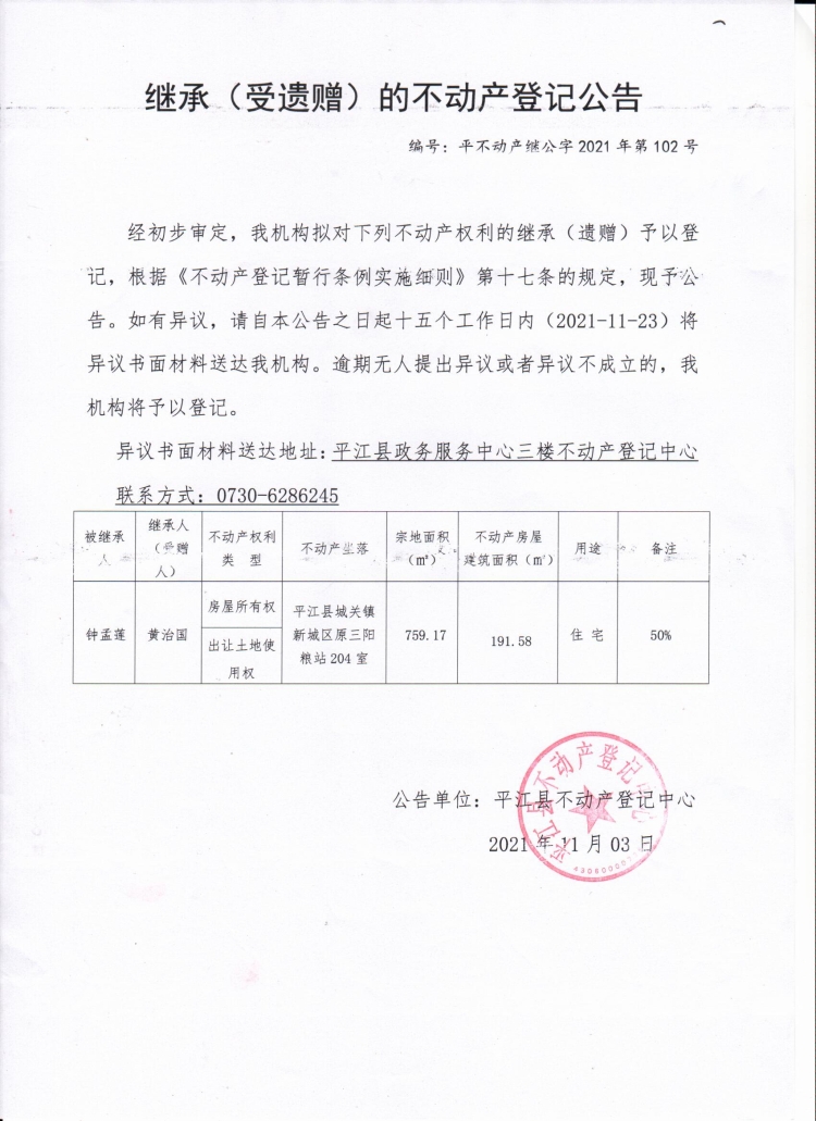 黄治国继承(受遗赠)的不动产登记公告.jpg