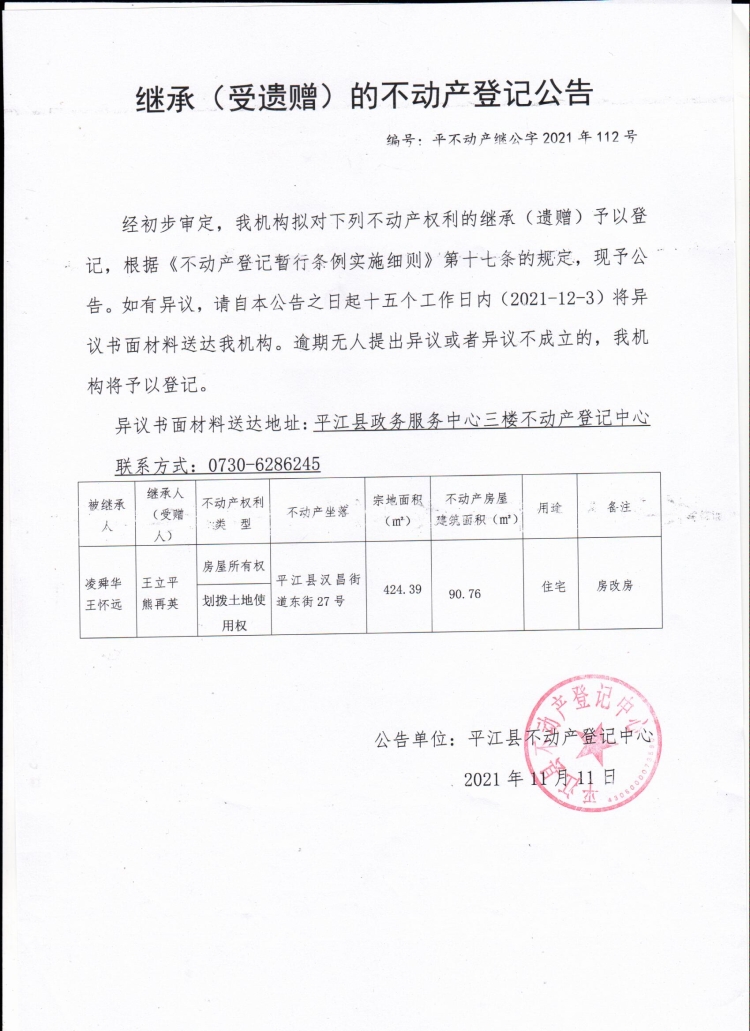 王立平、熊再英继承(受遗赠)的不动产登记公告.jpg