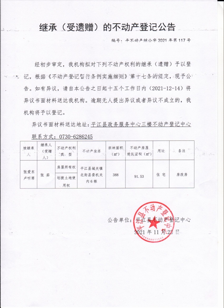 张茹继承(受遗赠)的不动产登记公告.jpg