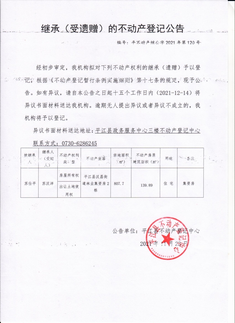 苏汉洋继承(受遗赠)的不动产登记公告..jpg
