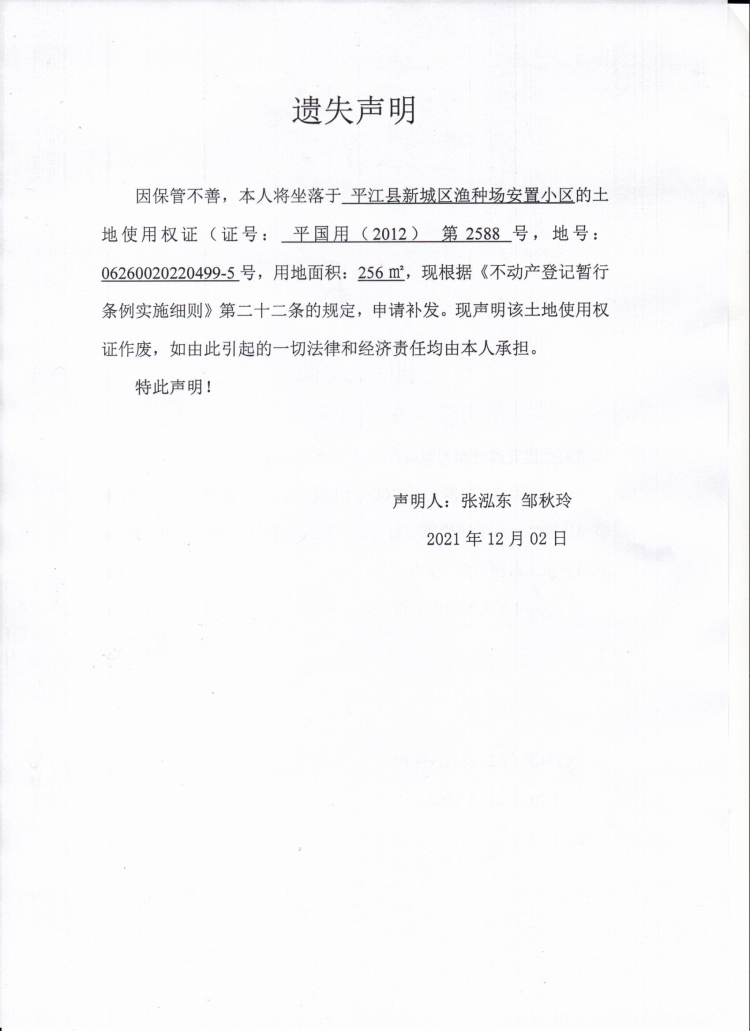 张泓东 邹秋玲国土证遗失声明.jpg