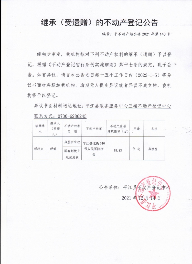 舒娜继承(受遗赠)的不动产登记公告.jpg