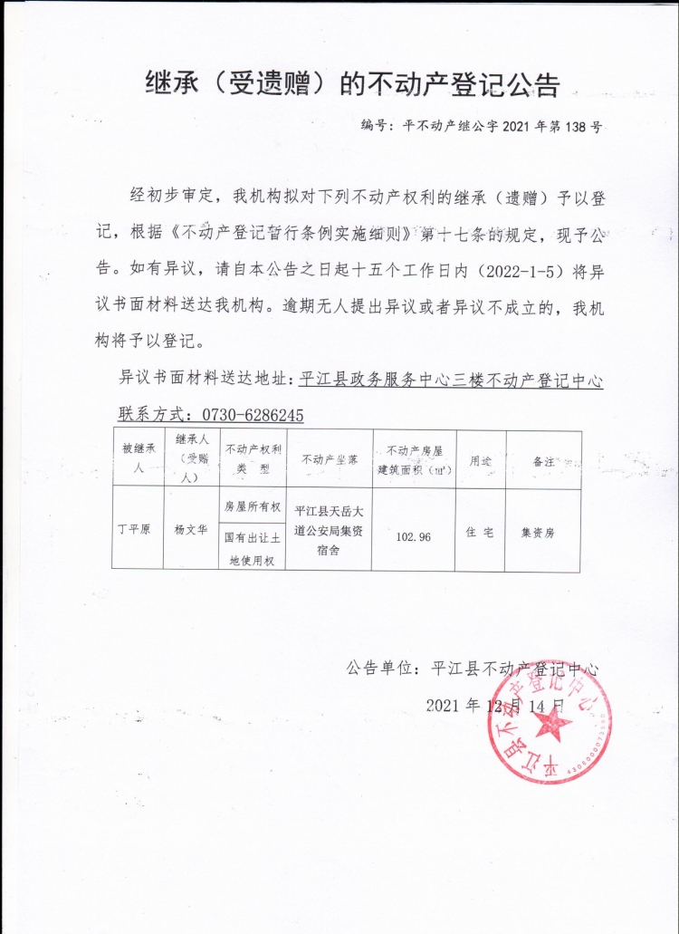 杨文华继承(受遗赠)的不动产登记公告.jpg