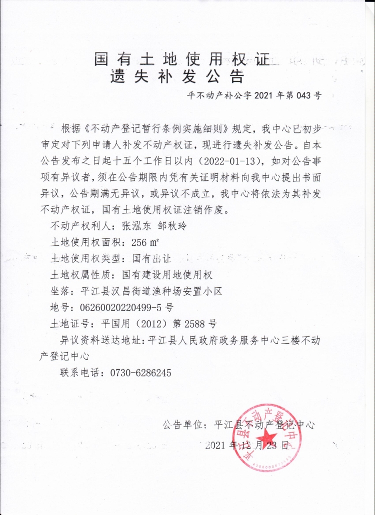 张泓东 邹秋玲国有土地使用权证遗失补发公告.jpg11.jpg