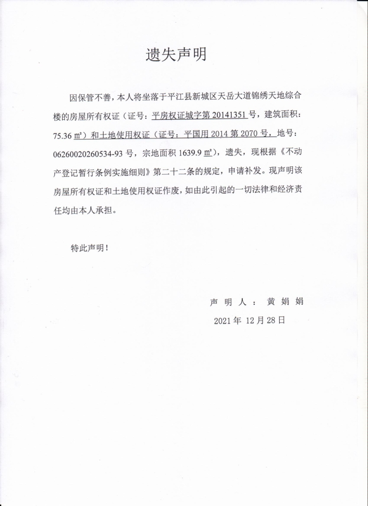 黄娟娟房屋所有权证和国土证遗失声明.jpg