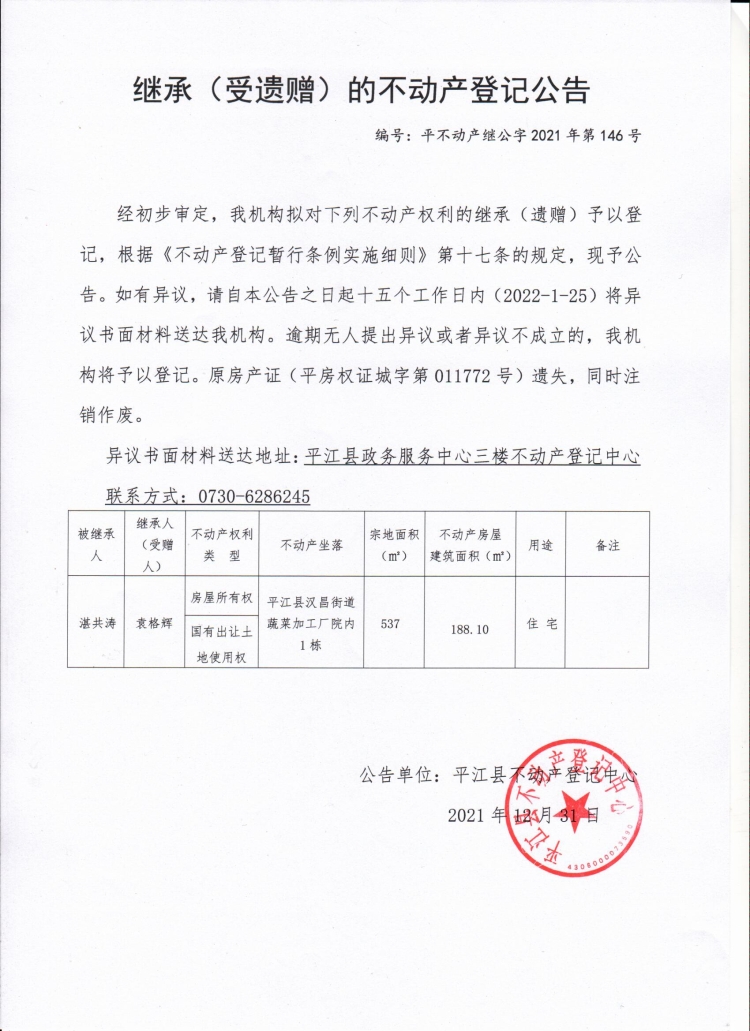 袁格辉继承(受遗赠)的不动产登记公告.jpg