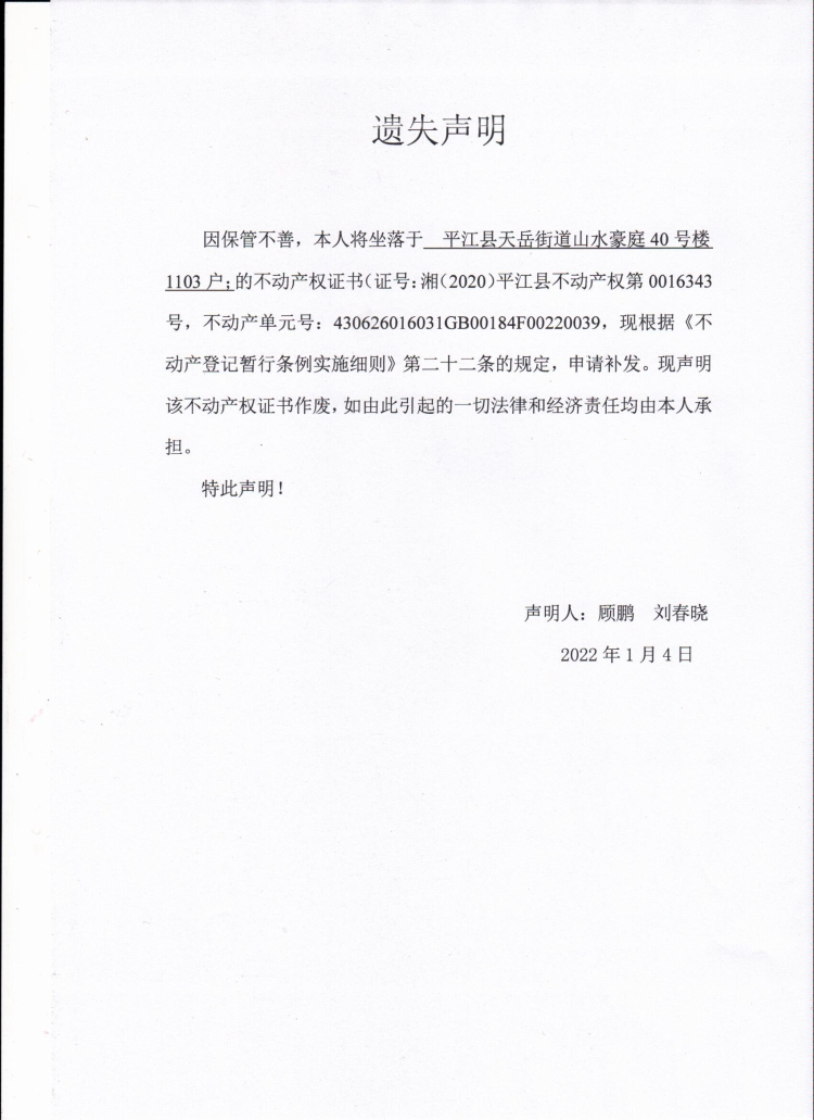 顾鹏、刘春晓不动产证遗失声明.jpg