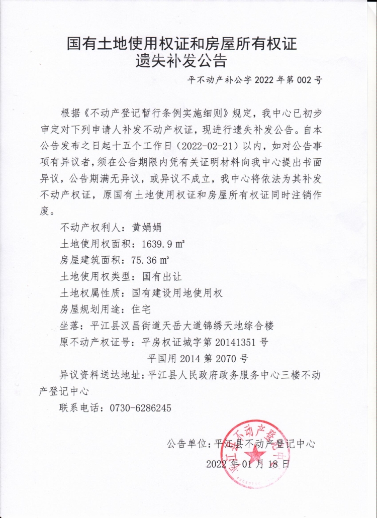 黄娟娟国有土地使用权证和房屋所有权证遗失补发公告.jpg