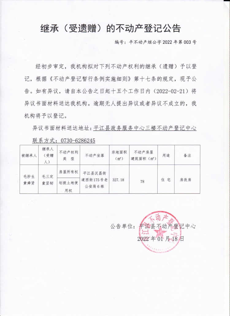 毛三定 童坚韧继承(受遗赠)的不动产登记公告.jpg