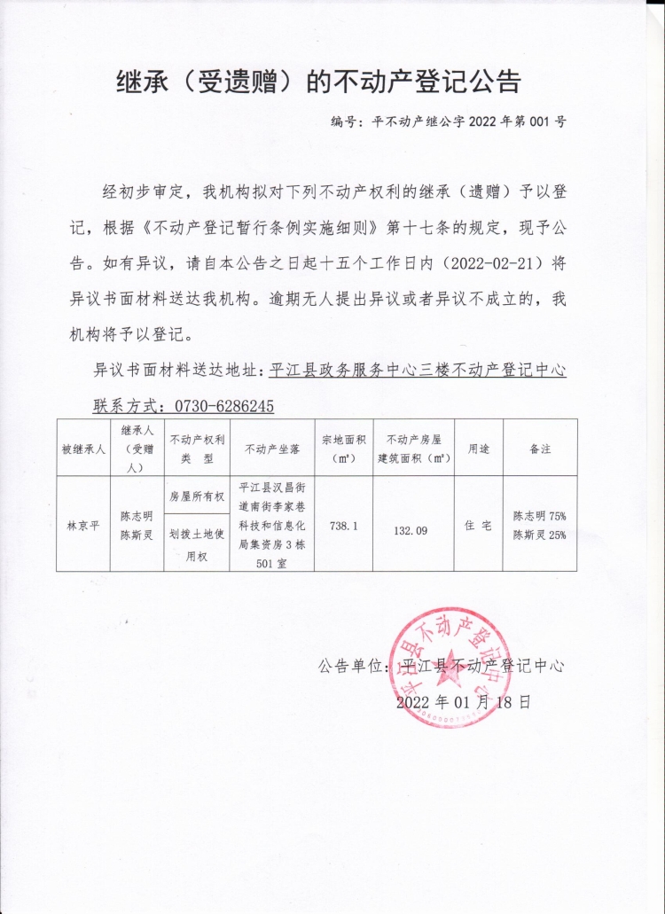陈志明 陈斯灵继承(受遗赠)的不动产登记公告.jpg