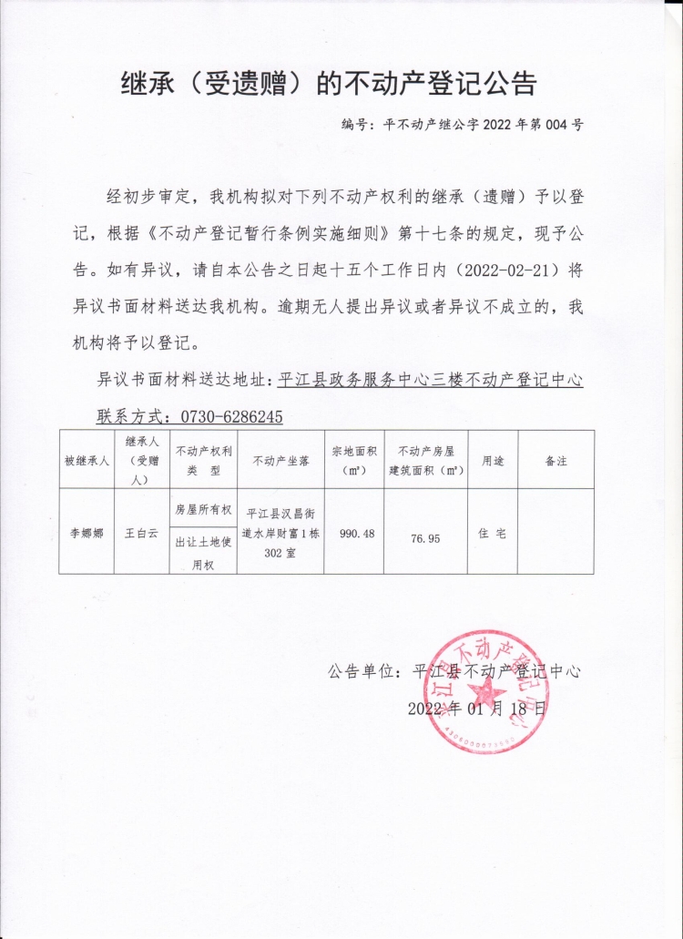 王白云(受遗赠)的不动产登记公告.jpg