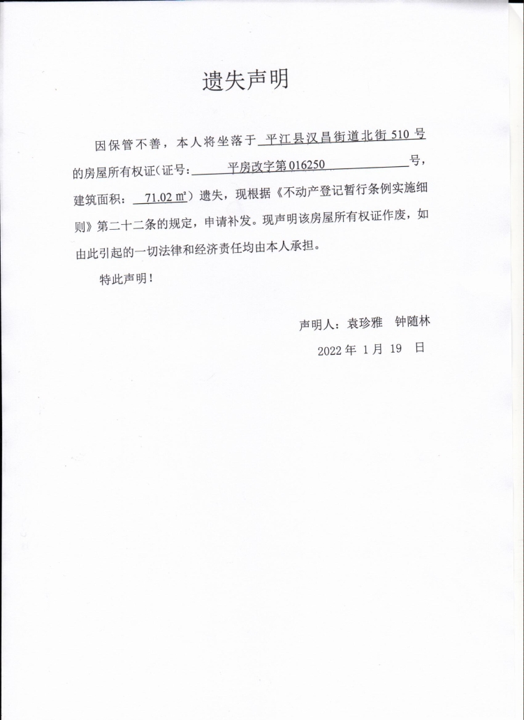 袁珍雅、钟随林房屋所有权证遗失声明.jpg