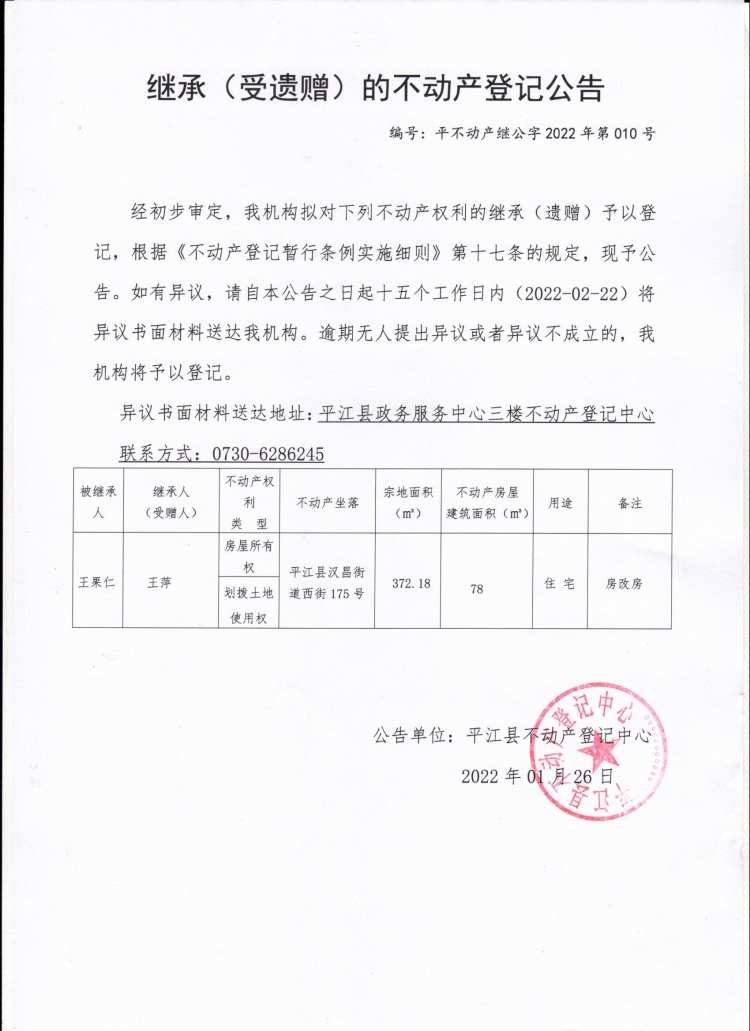 王萍继承(受遗赠)的不动产登记公告.jpg