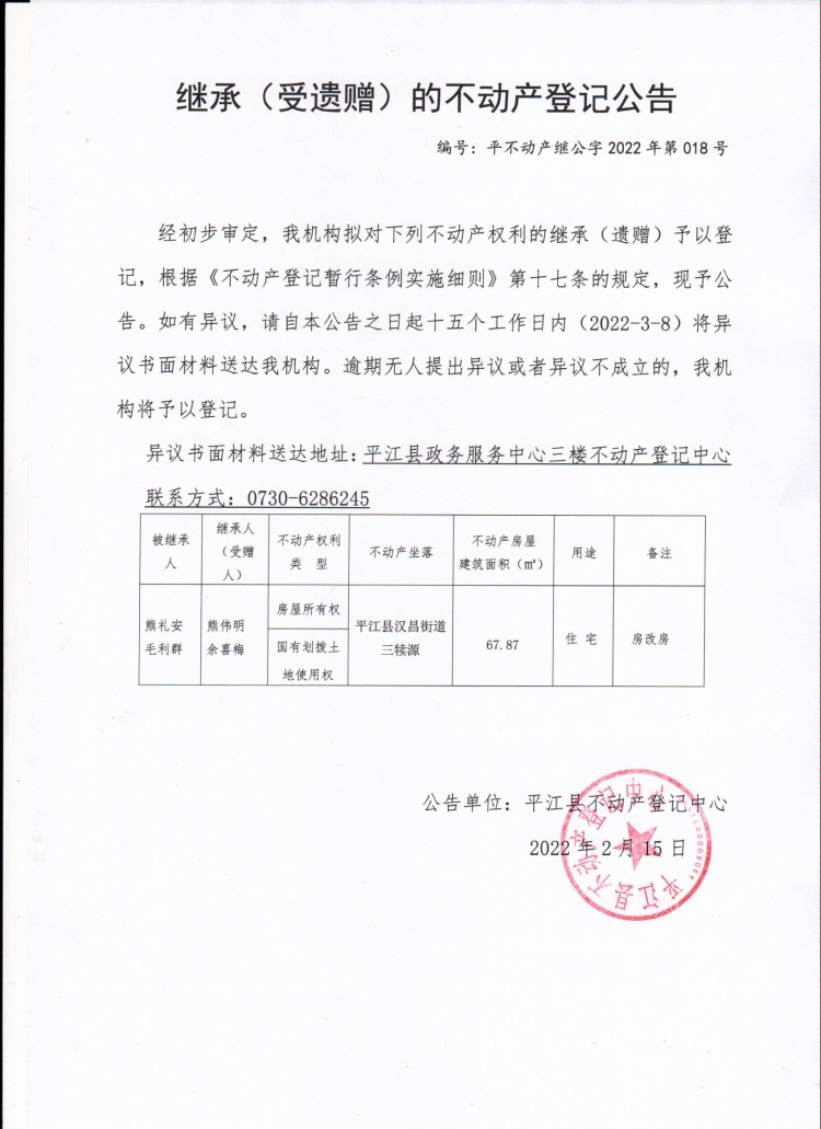 熊伟明、余喜梅继承(受遗赠)的不动产登记公告.jpg