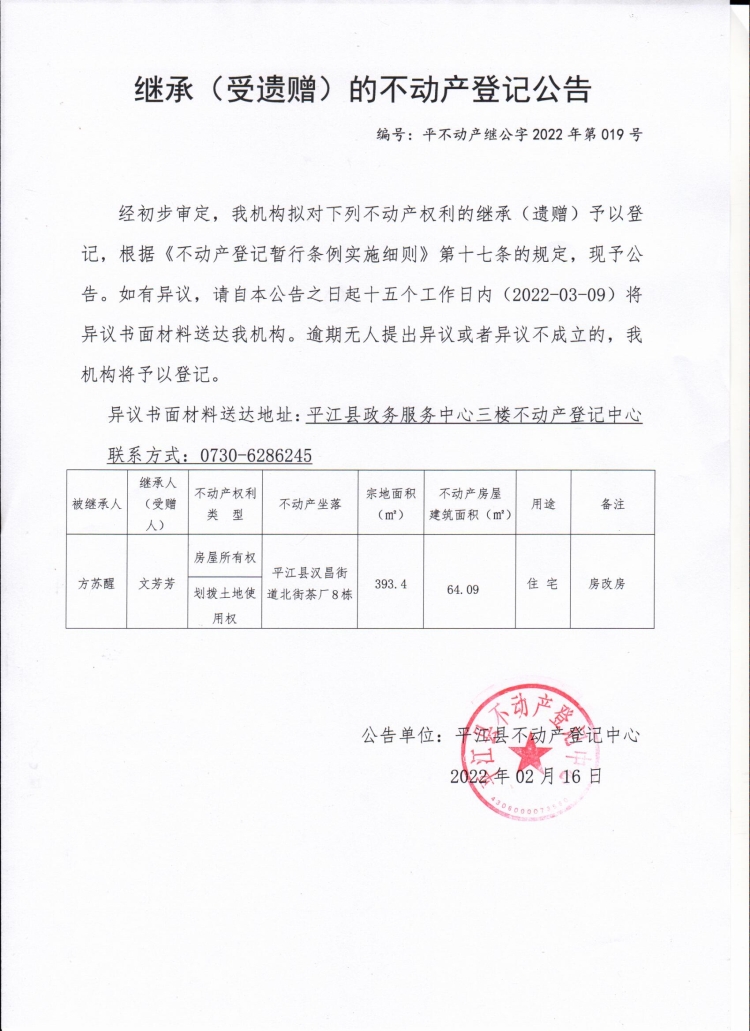 文芳芳继承(受遗赠)的不动产登记公告.jpg