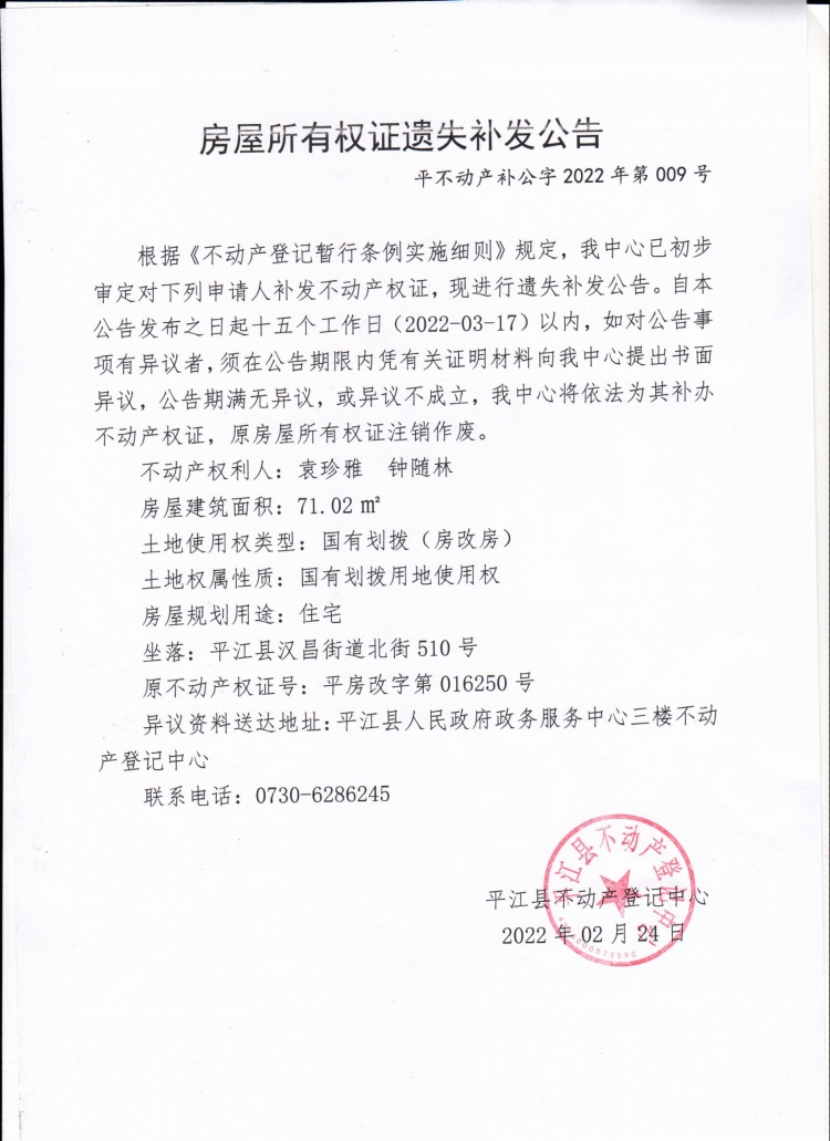 来源:平江县自然资源局不动产登记中心