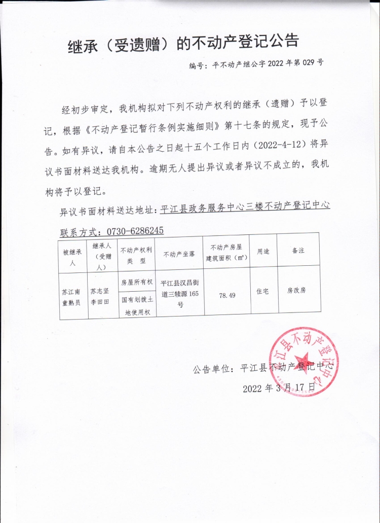 苏志坚、李田田继承(受遗赠)的不动产登记公告.jpg