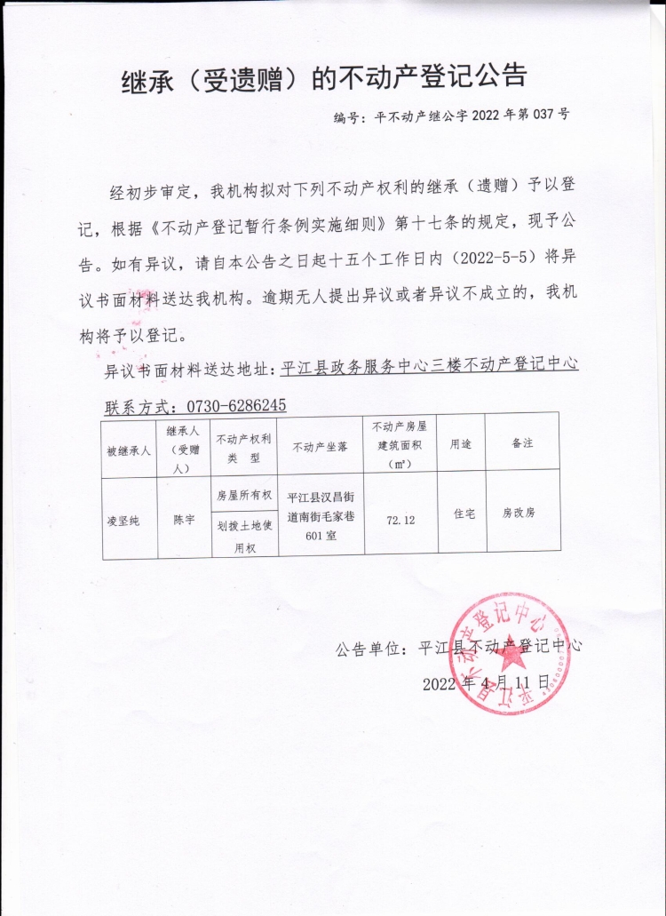 陈宇继承(受遗赠)的不动产登记公告.jpg