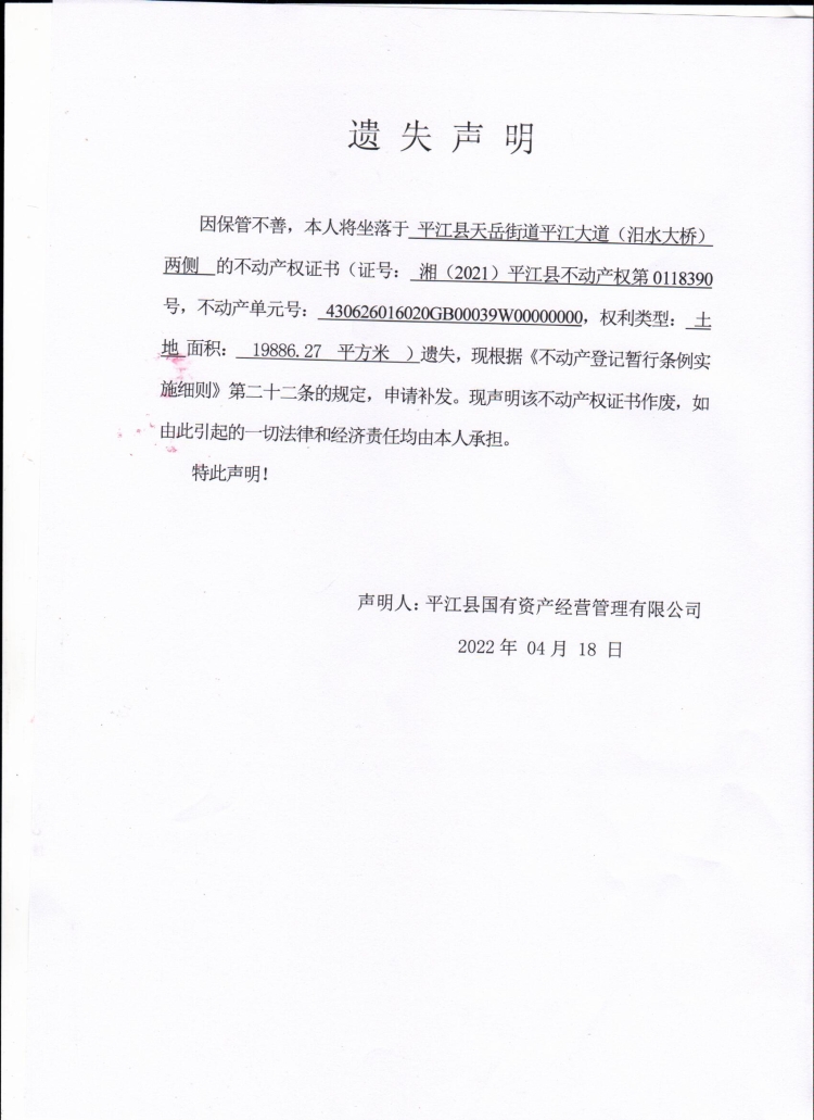 平江县国有资产经营管理有限公司国土证遗失声明.jpg
