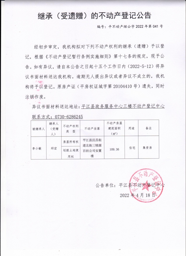 邱宏继承(受遗赠)的不动产登记公告.jpg