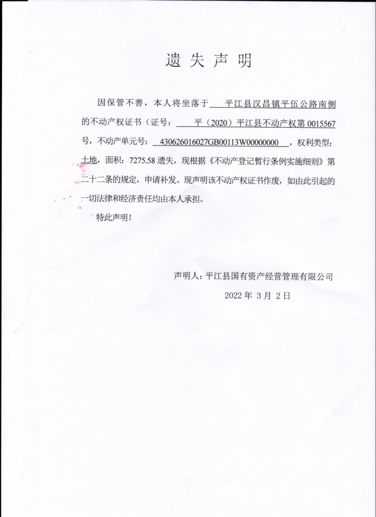 平江县国有资产经营管理有限公司不动产证遗失声明.jpg