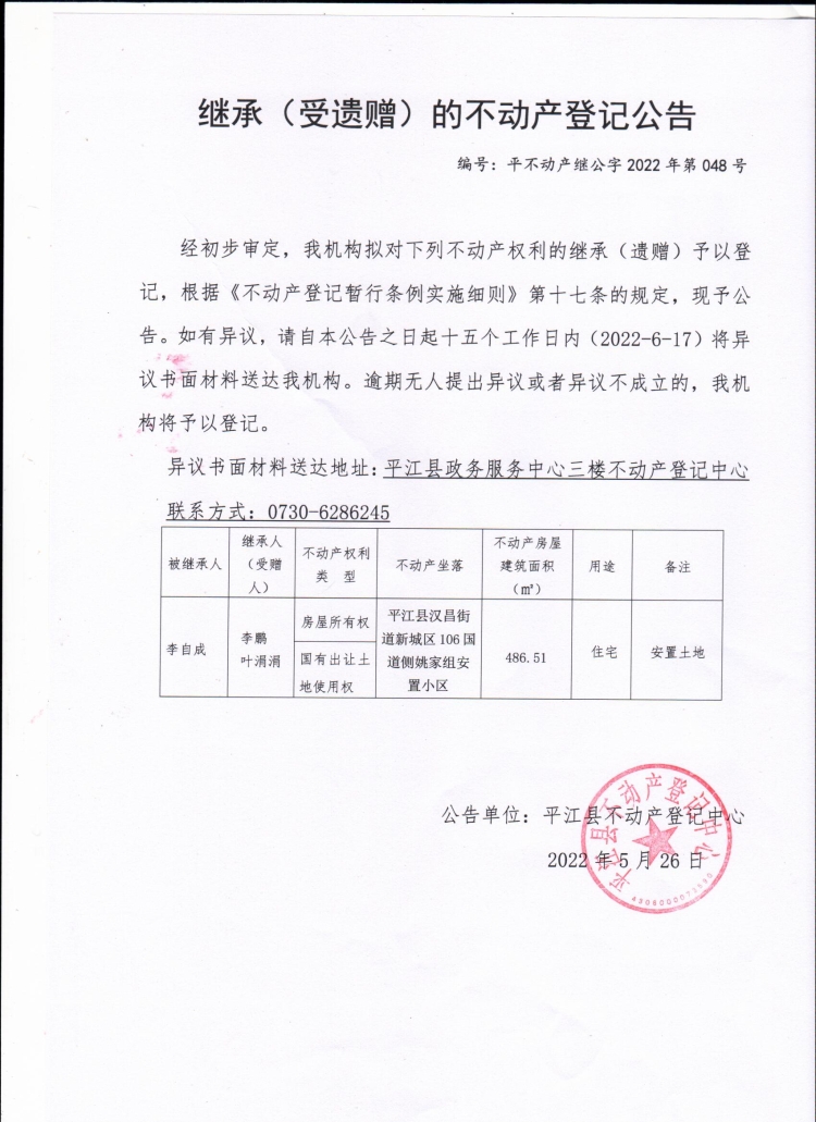 李鵬、叶涓涓继承(受遗赠)的不动产登记公告.jpg