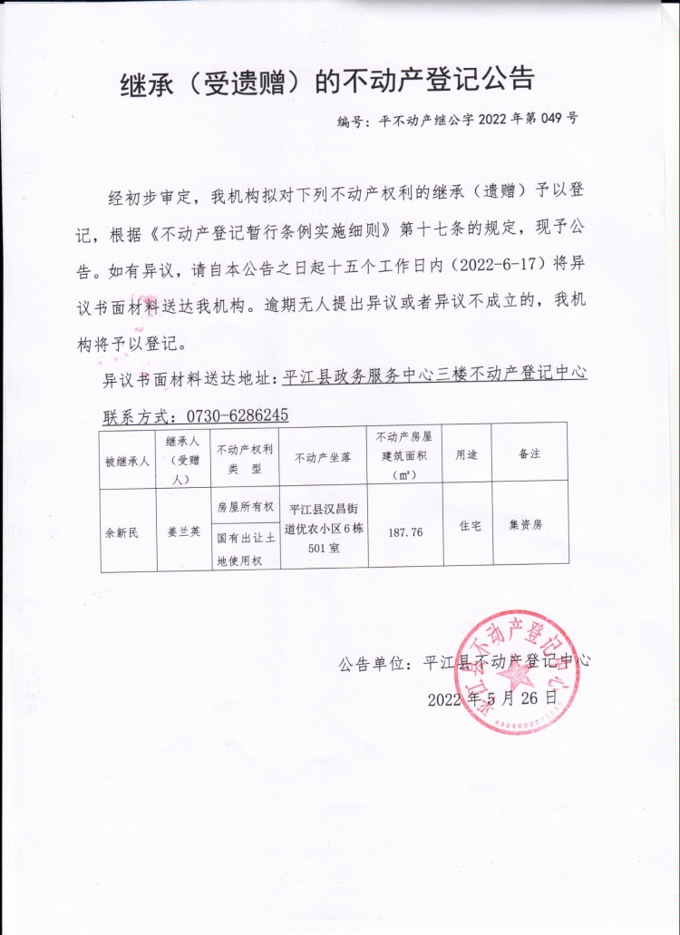 姜兰英继承(受遗赠)的不动产登记公告.jpg