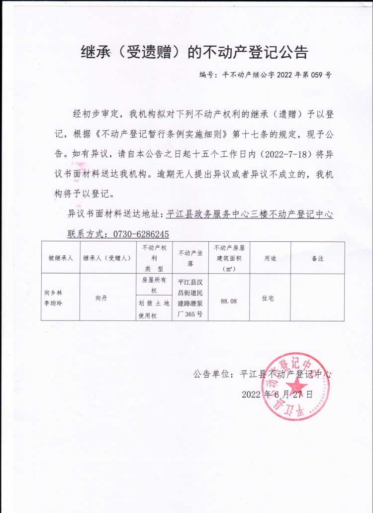 向丹继承(受遗赠)的不动产登记公告.jpg