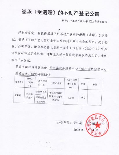 何跃龙、王光辉继承(受遗赠)的不动产登记公告