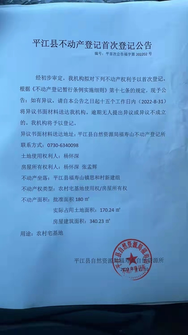 杨怀深、张孟辉首次登记公告