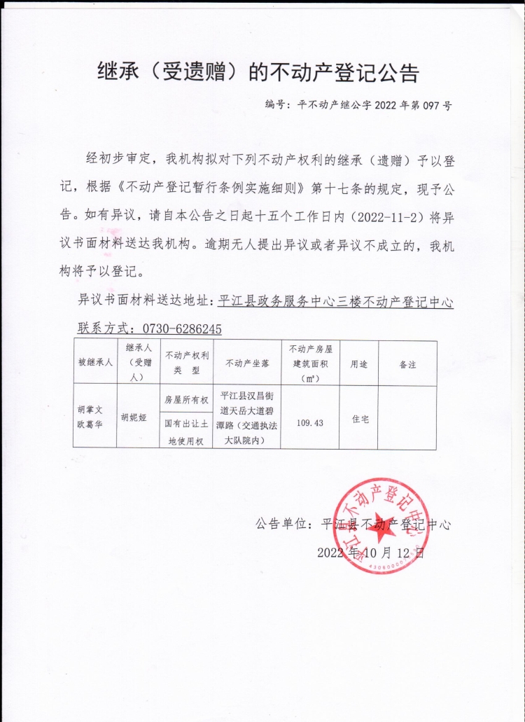 胡妮娅不动产继承公告