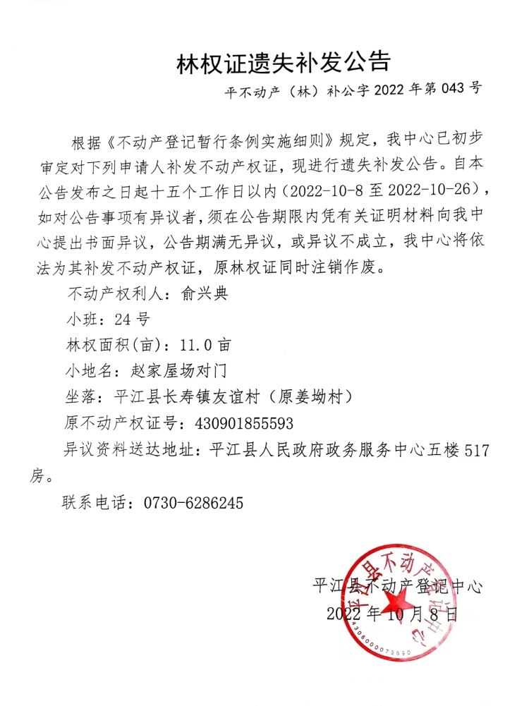 俞兴典林权证遗失补发公告
