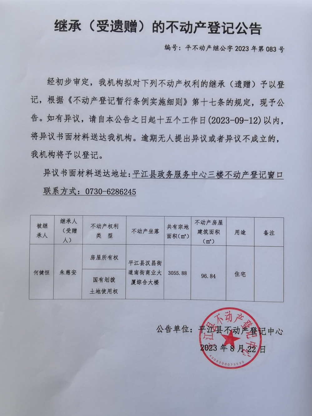 朱慈安继承不动产登记公告