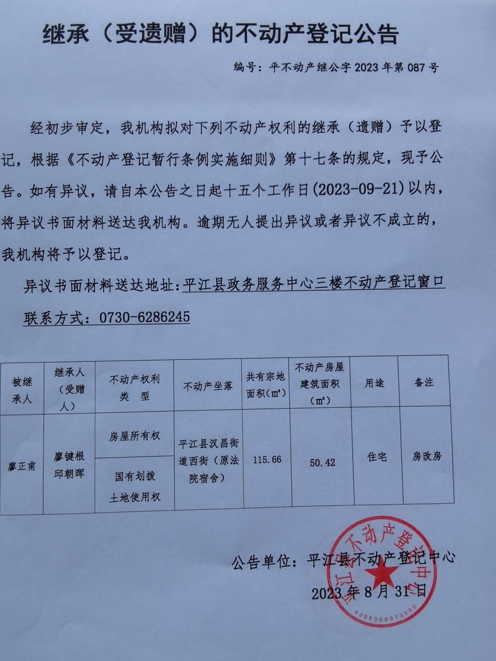 不动产登记公告