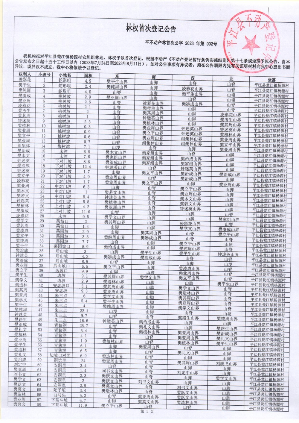 瓮江镇杨源村安坦组林权首次登记公告