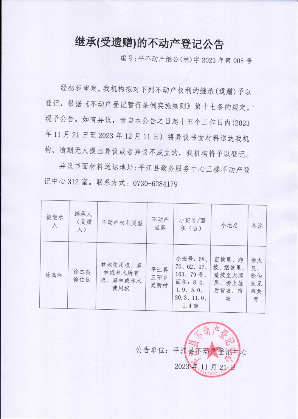 徐杰良、徐伯良继承(受遗赠)的不动产登记公告