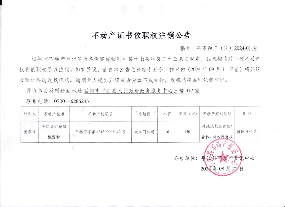 黄春来不动产证书依职权注销公告
