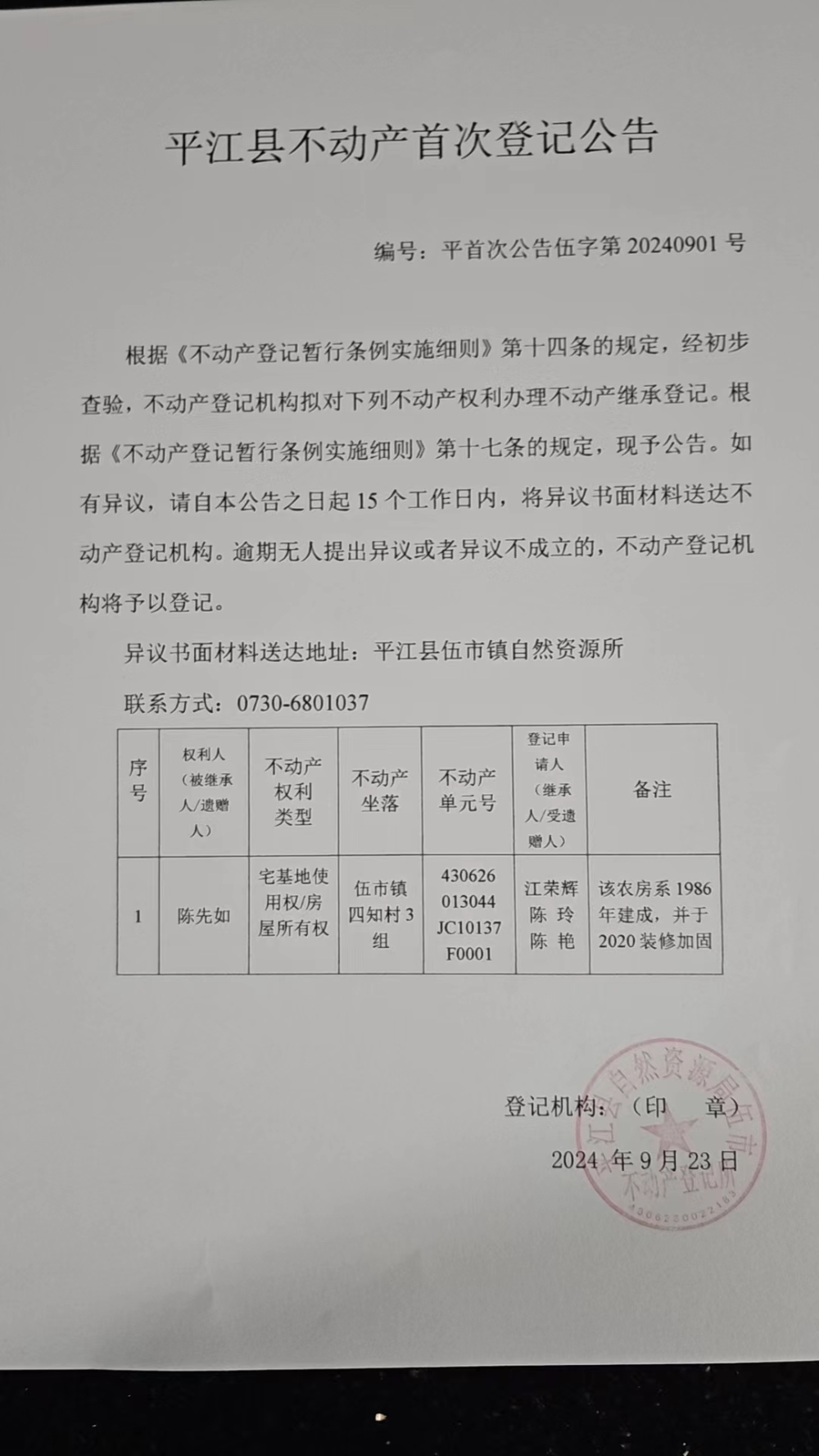 不动产登记公告