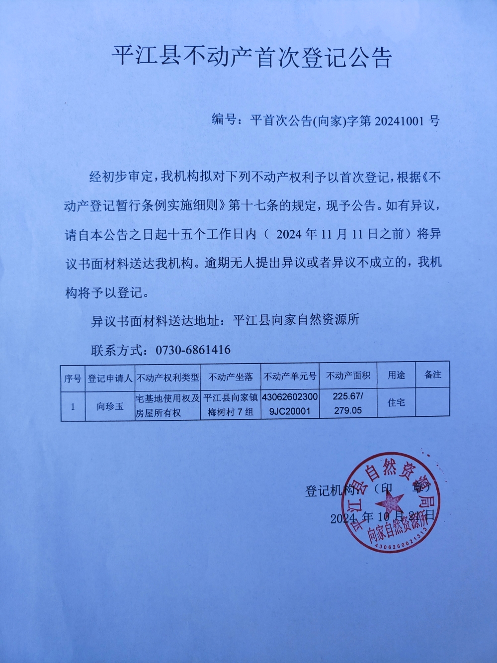 向家镇梅树村向珍玉宅基地首次登记