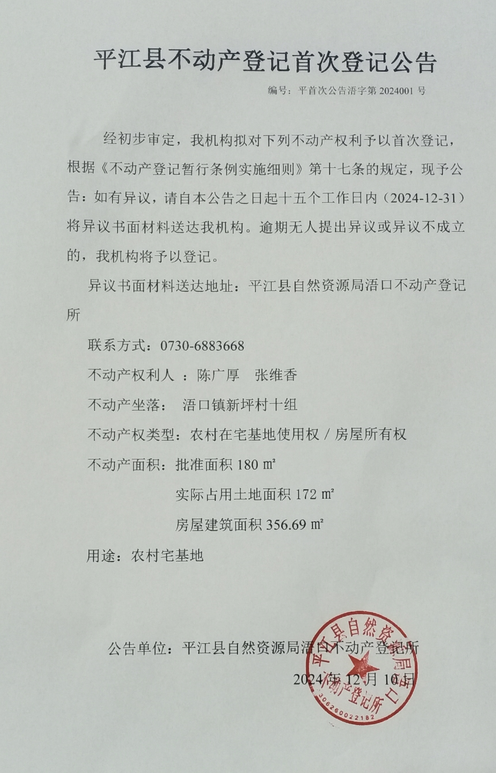 不动产登记公告