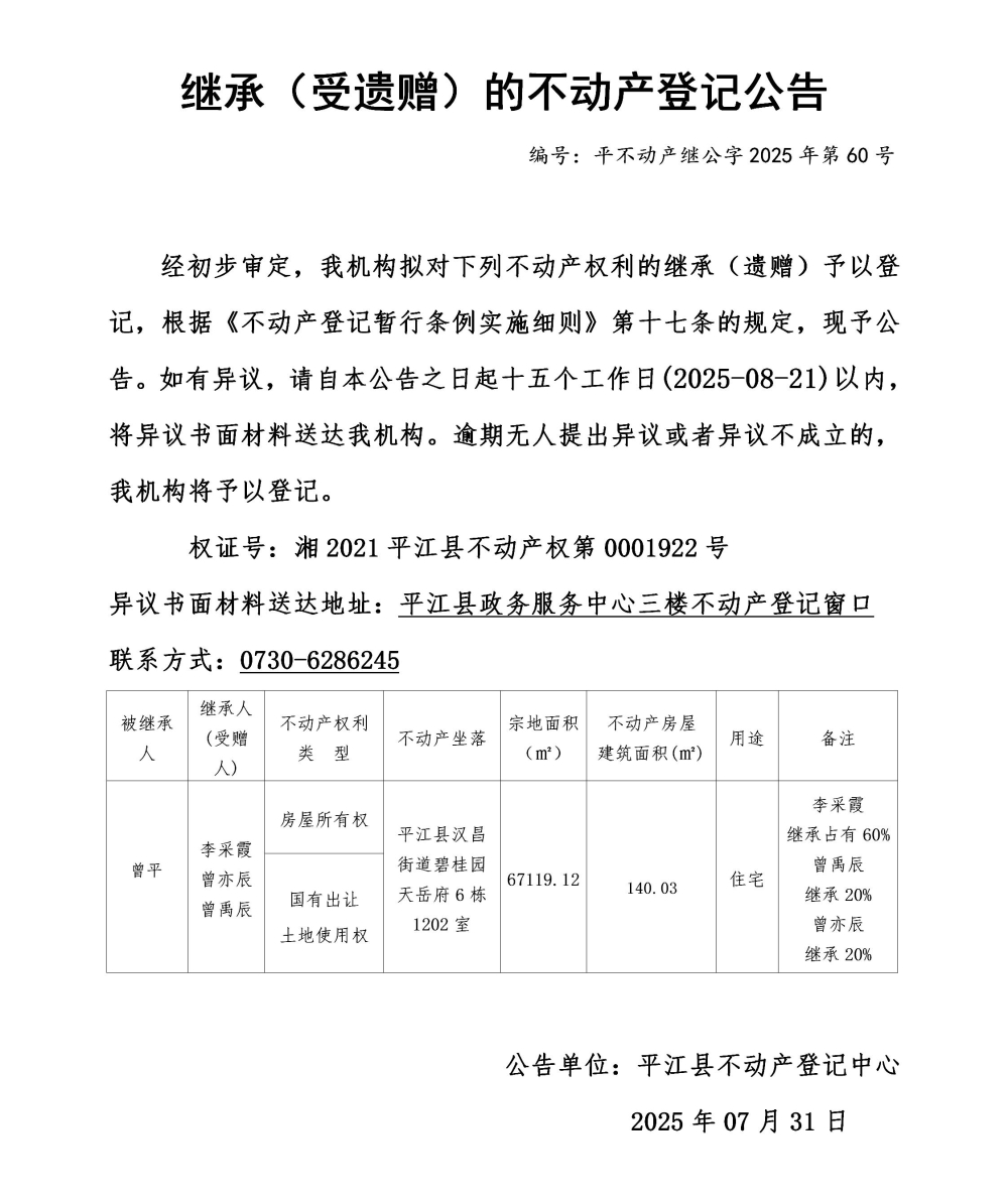 李采霞 曾亦辰 曾禹辰 继承不动产登记公告202560