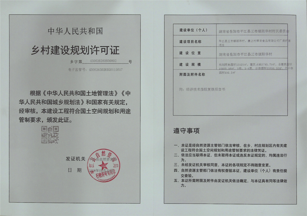 平江县三市镇联华村、寨上村棒哥食品有限公司厂房扩建项目