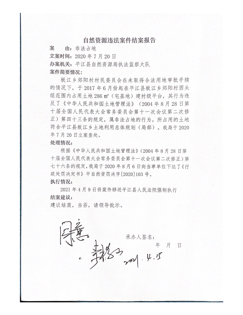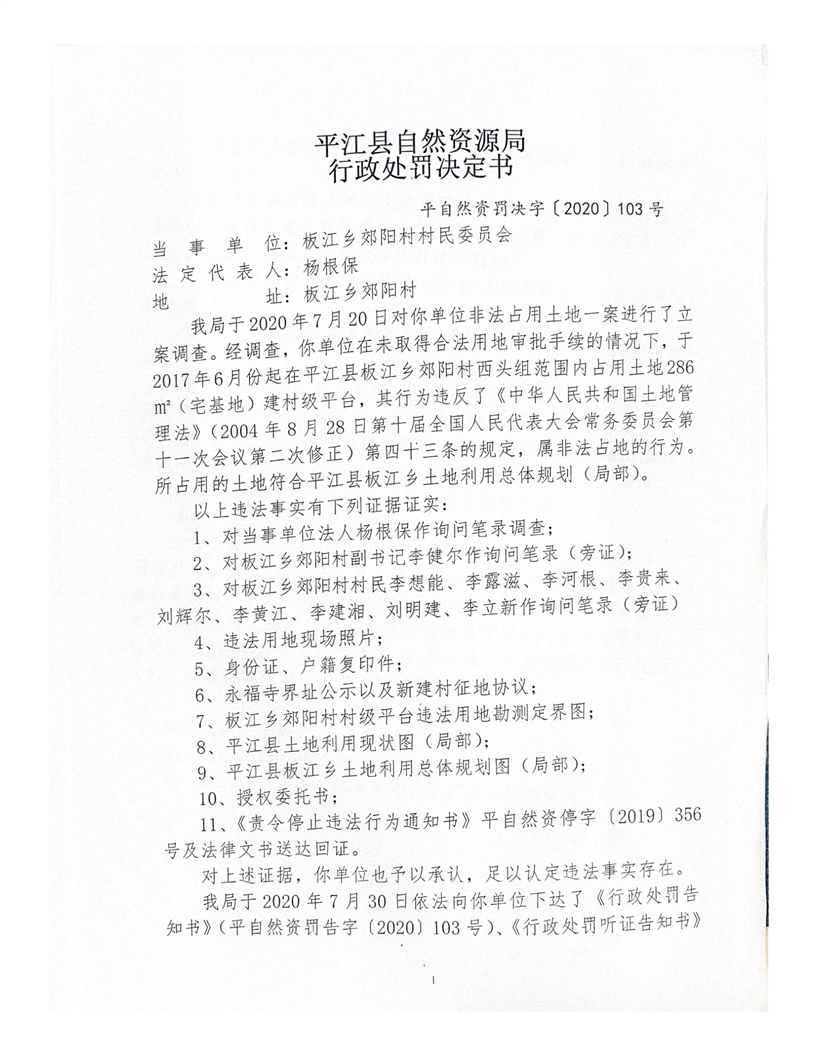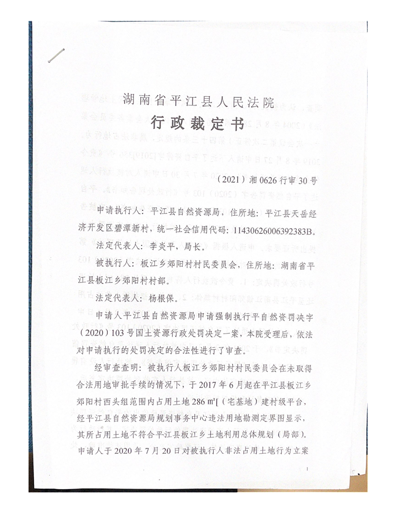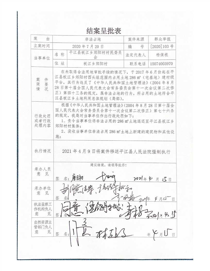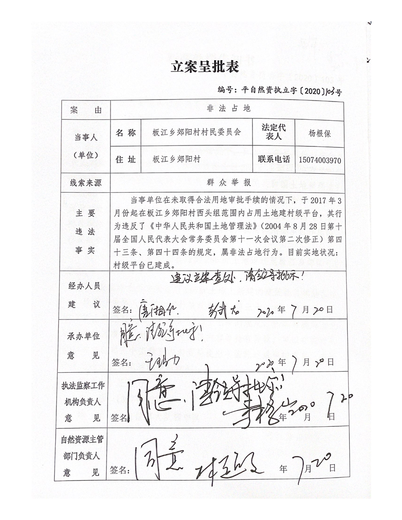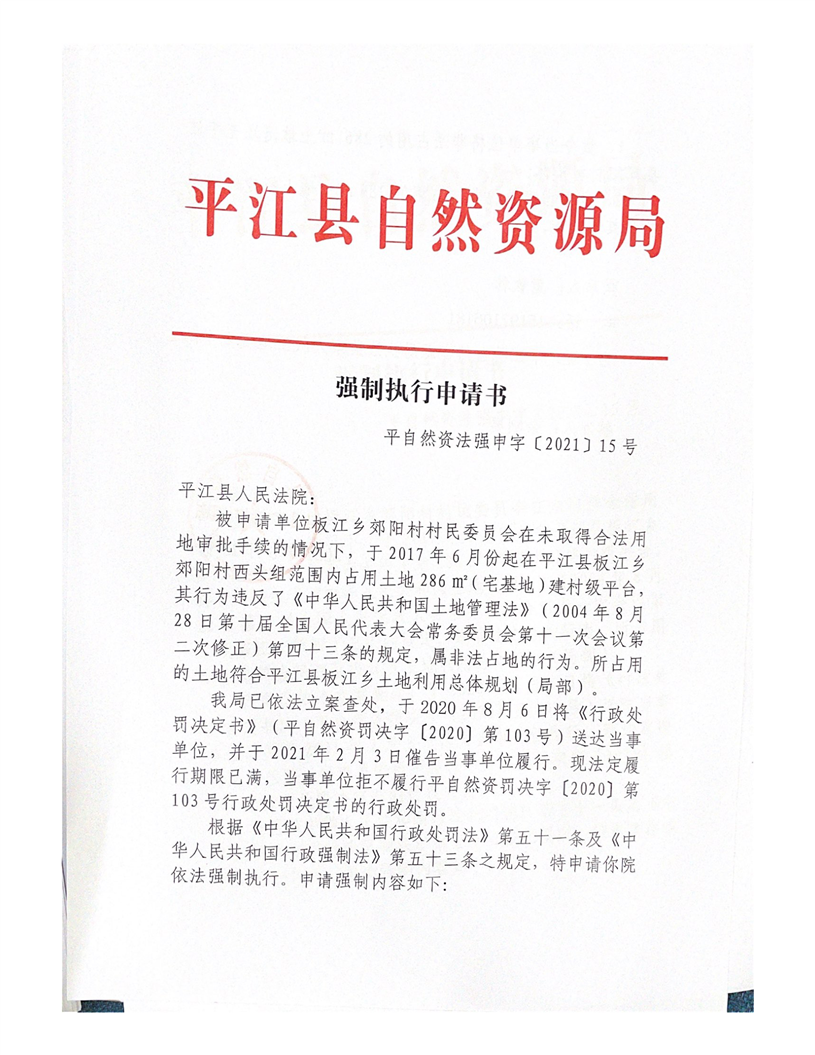 板江乡郊阳村村民委员会非法占地案